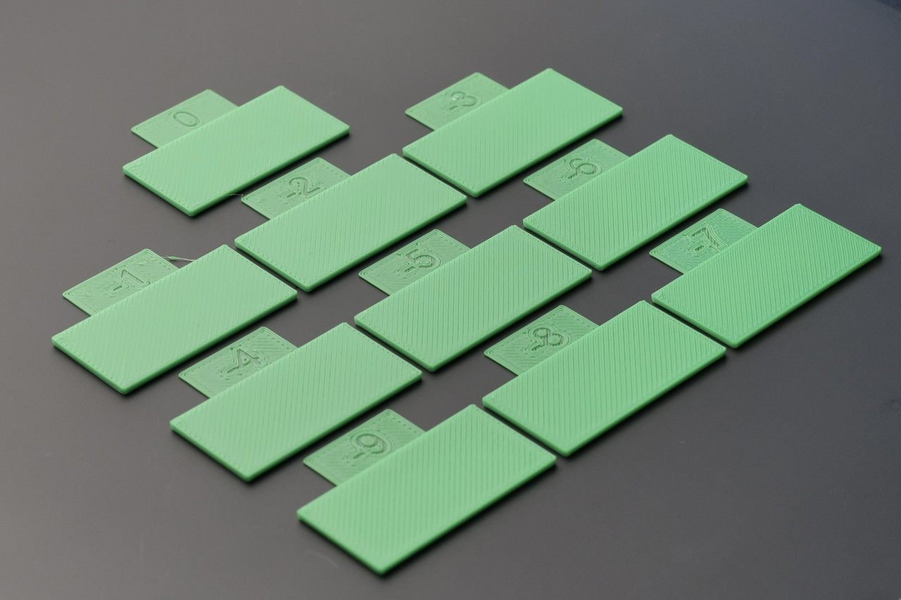 The -1 sample seems to be OK at first glance, but looking closer, you can see some very faint signs of under-extrusion between the printed lines. Due to this, it is recommended to avoid using the -1 value, confirming that 0 is the correct result.