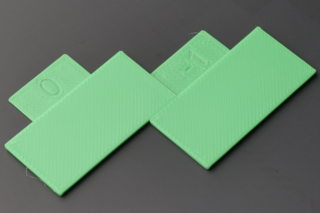 Pay close attention to the middle section of the test sample rectangles, as it will show any sign of under-extrusion. The start and end of the printed lines might show slight signs of over-extrusion, but that is considered normal.