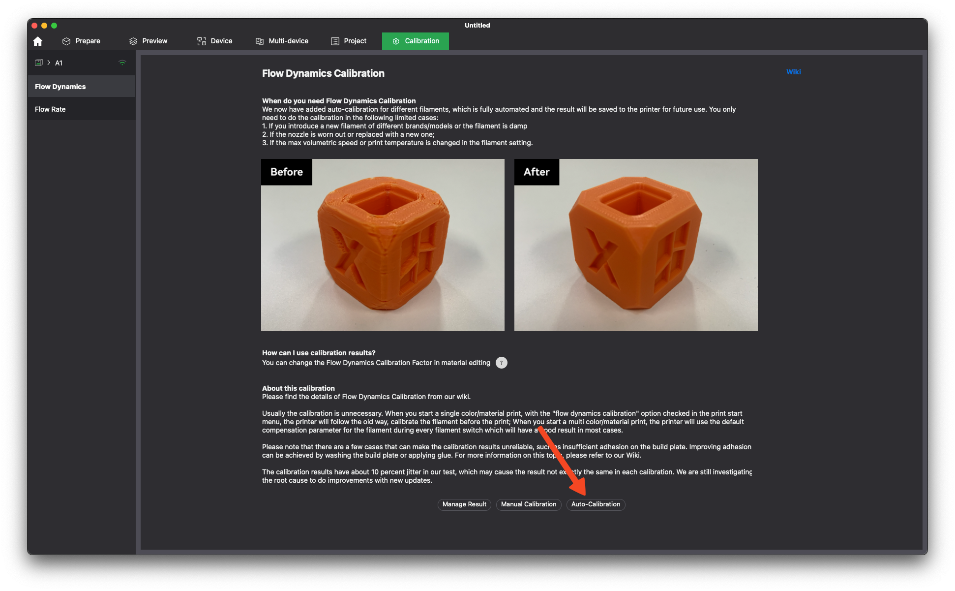 To start, navigate to the Calibration tab, select Flow Dynamics, then click on Auto-Calibration.