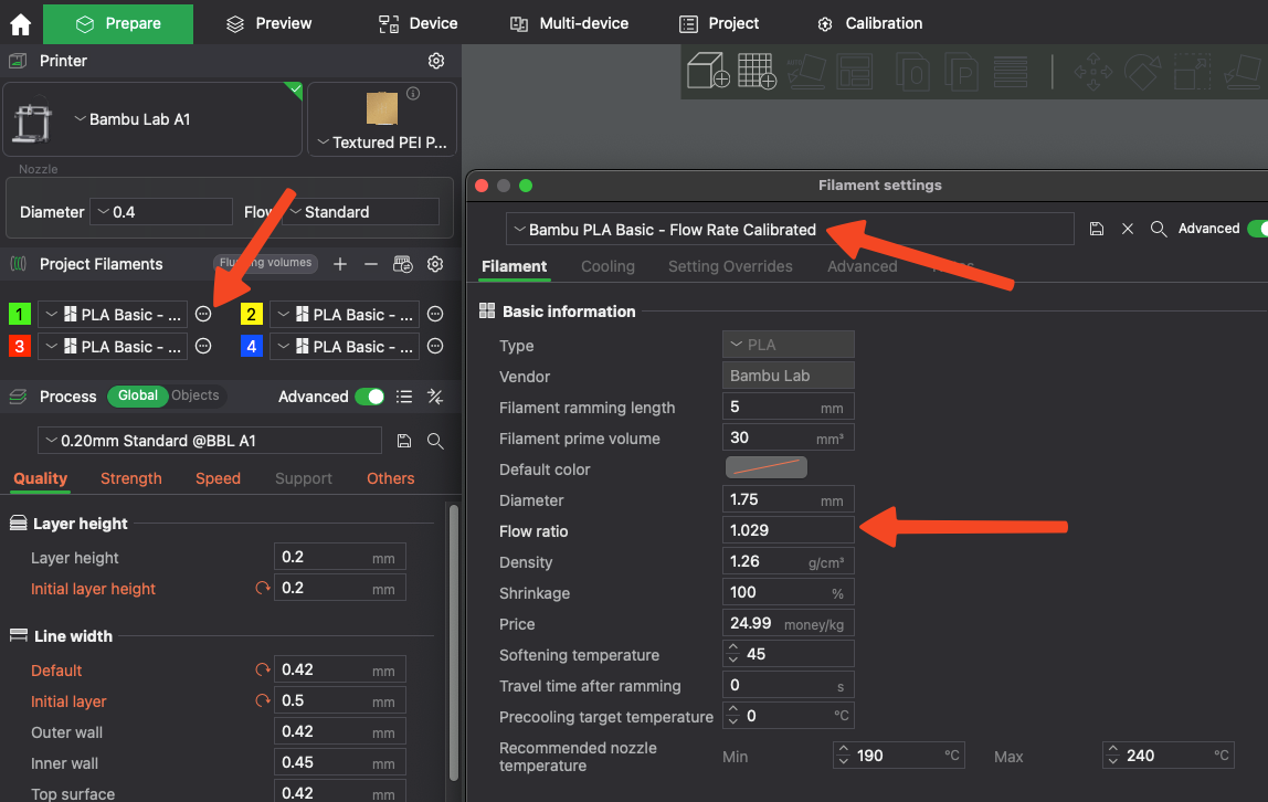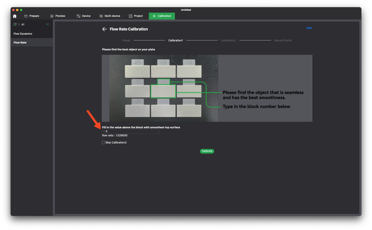 At this point, it’s time to select the best sample in Bambu Studio (5, based on our test) which will show the best flow rate to use, in this case 1.029.