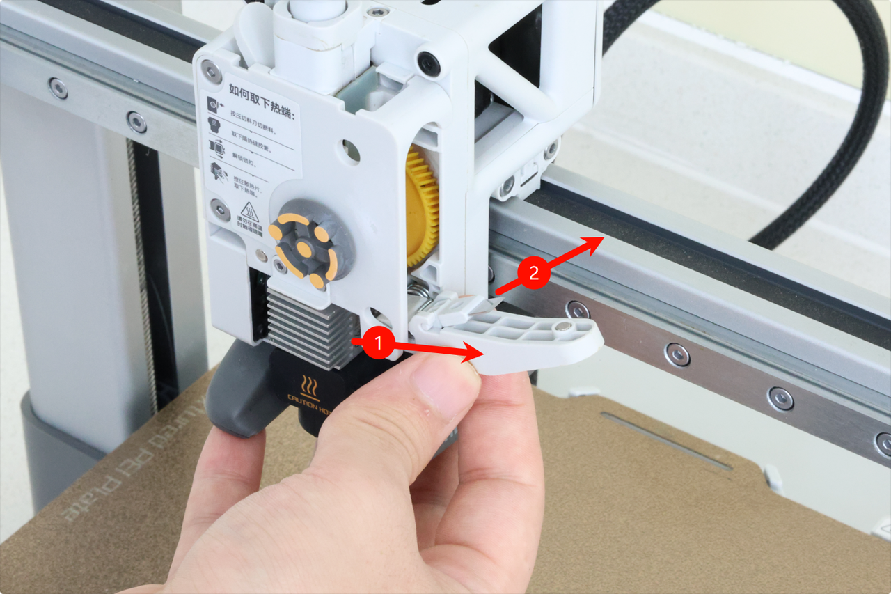 To ensure everything works as expected, press the filament cutter lever a few times and ensure the motion is smooth and the lever returns to the initial position.