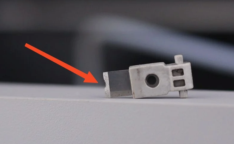 Installing the new filament cutter blade is easy. Simply align the blade with the filament cutter to slot it in place.