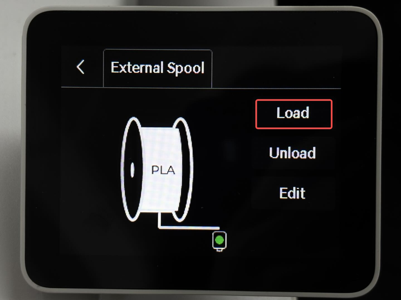 Next, tap the Load button to start the filament loading process.