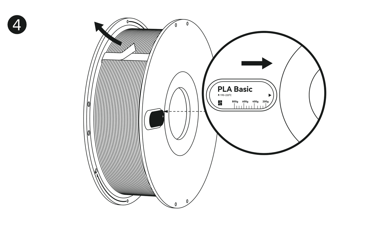 Finally, remove the plastic tabs holding the filament, and apply the sticker on the side of the spool.