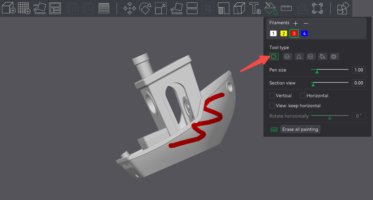 With the Pen size slider, you can adjust the brush size for better precision. Use a smaller size for fine details or increase it to quickly cover larger sections of your model. This flexibility makes the Circle tool especially useful for models with intricate details or areas that need more manual control over color placement.