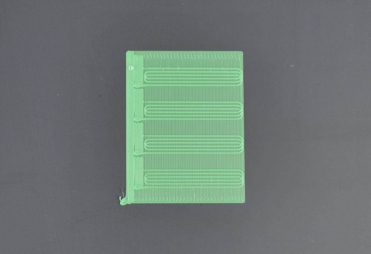 Once you click Calibrate, the printer will begin calibrating the filament after the pre-print process is completed. You just need to wait for the printer to finish the print job, then move to the next step. The pattern will be similar to the one shown in the image.