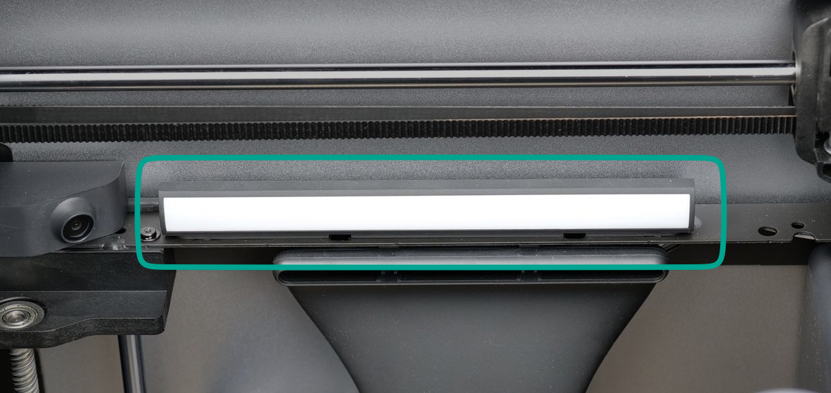 The chamber LED light bar is located on the left side of the printer’s chamber. Its primary purpose is to provide illumination over the 3D printed model, ensuring better visibility. This is particularly useful for the Live View Camera, allowing it to function effectively in low-light conditions. Additionally, the LED light helps you see more clearly inside the darker chamber, making it easier to monitor the printing process.