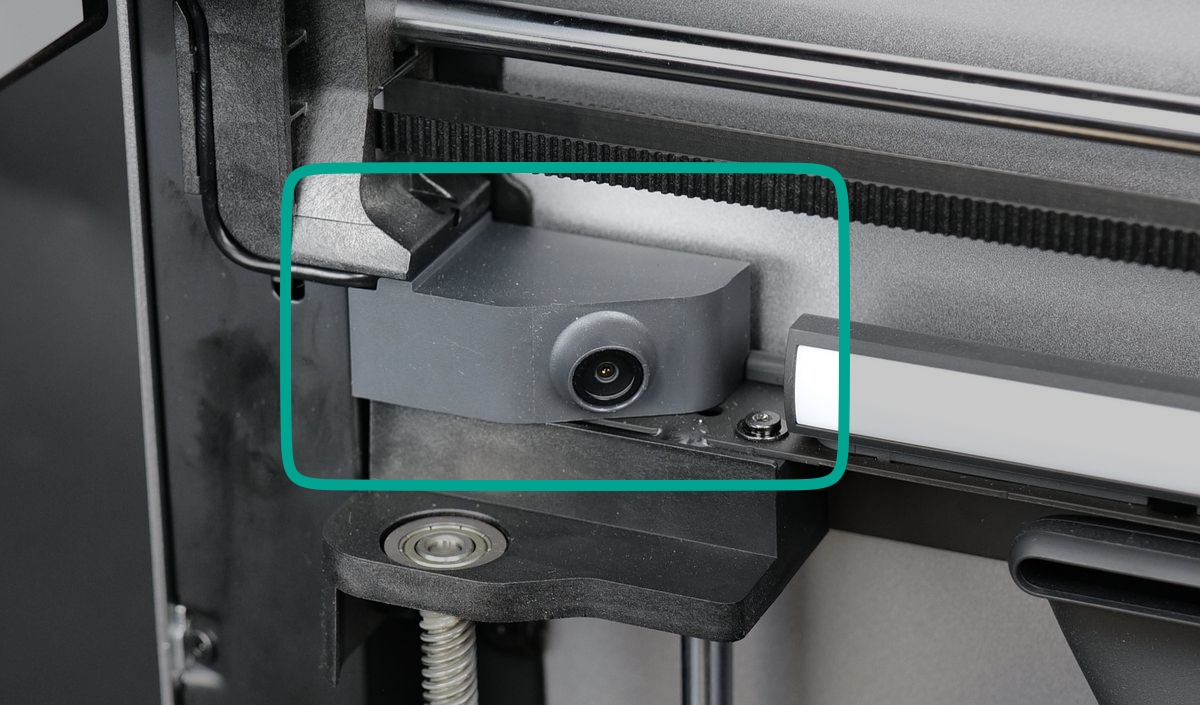 For timelapse recording and real-time monitoring, the X1C is equipped with a Live View Camera, positioned on the front left side of the printer. This camera allows you to capture print progress, monitor prints remotely, and create smooth timelapse videos. By integrating with the printer’s firmware, it can be remotely accessed in the Bambu Handy app or in Bambu Studio.
