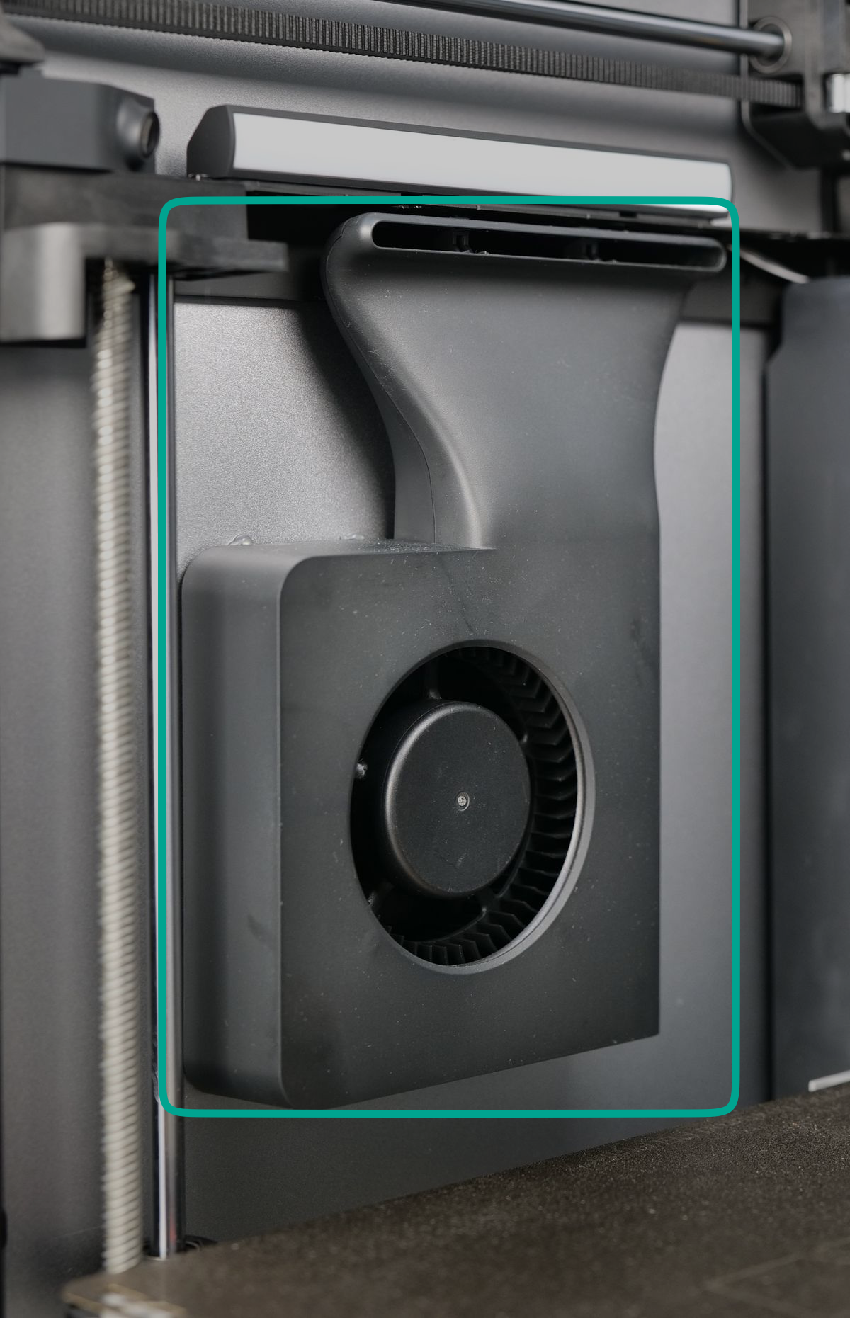 To address this, the auxiliary cooling fan creates a controlled airflow blanket over the freshly printed layer, helping it solidify quickly and evenly. This ensures better layer bonding and reduces issues like sagging or warping, especially when printing at higher speeds or using materials that require precise cooling control, like PLA.