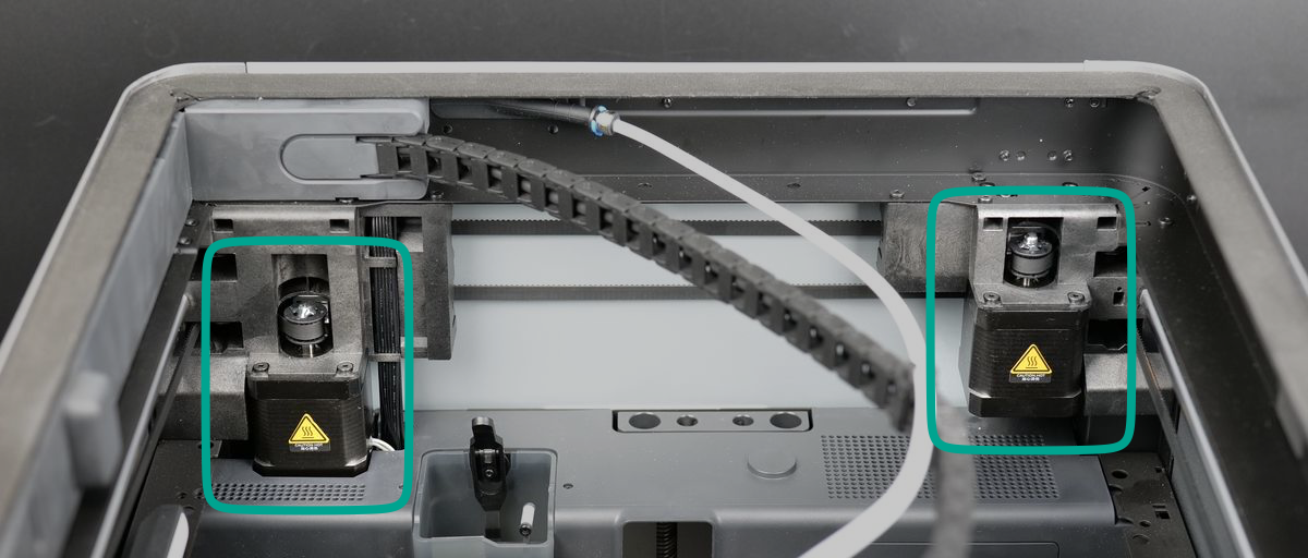 - Filament cutter, which enables seamless material changes