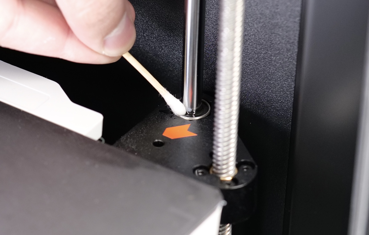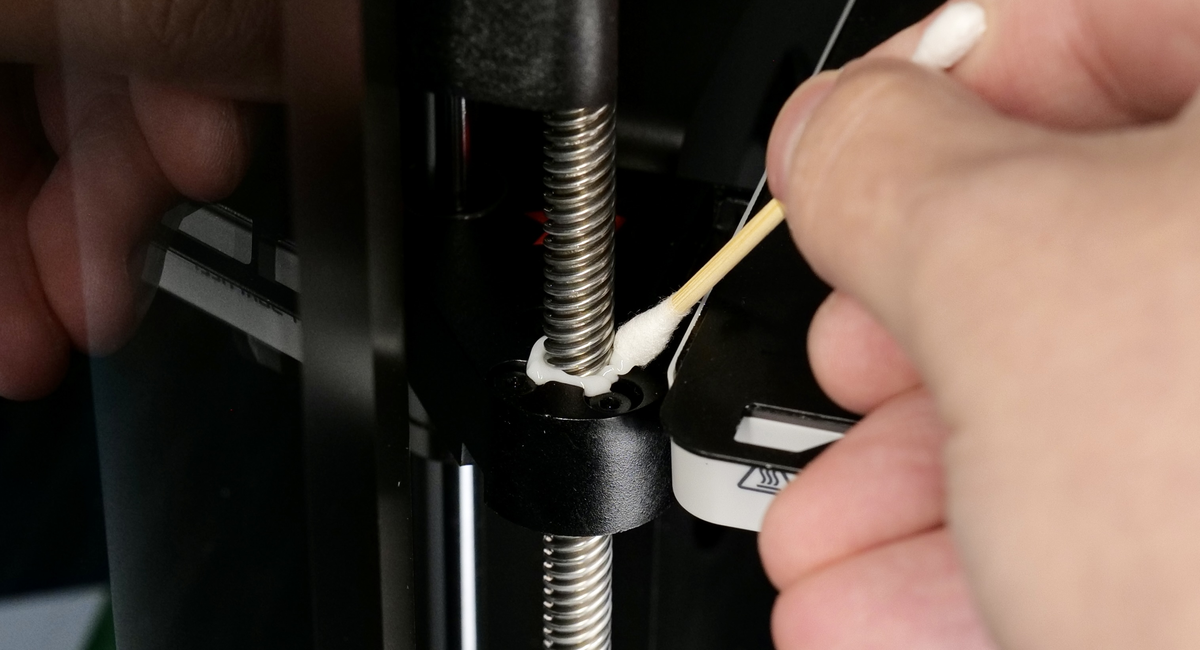 Avoid applying too much oil as it can drip on the linear bearing. If that happens, use a q-tip to remove any excess oil.