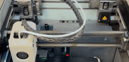 The Bambu Lab X1C uses a pair of dual carbon fiber rods for the X-axis motion system. These rods are lightweight, rigid, and paired with self-lubricating bushings located in the print head, which eliminate the need for traditional greasing.