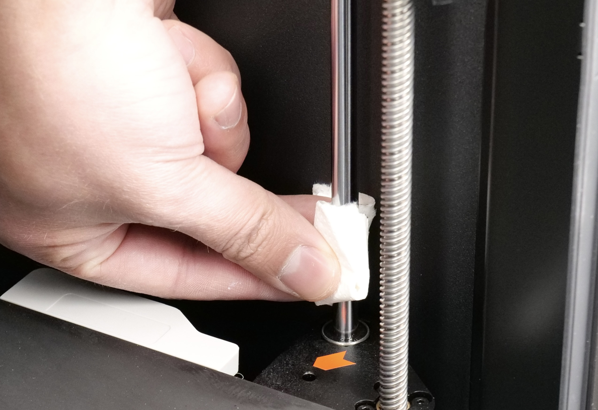 For the Z-axis, there are two items that need to be cleaned and maintained from time to time. Three linear rods and three leadscrews.