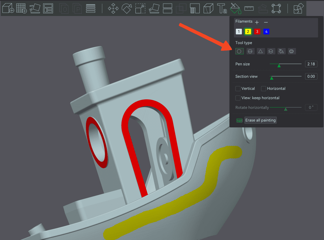 If the Fill tool isn’t the best fit for your model, another great option is the Circle tool. This tool allows you to freely draw on the model, applying color exactly where you need it.